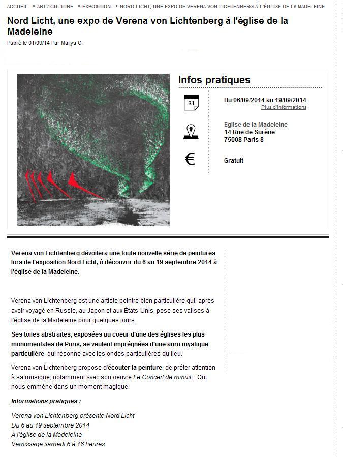 Nord Licht, une expo de Verena von Lichtenberg à l'église de la Madeleine